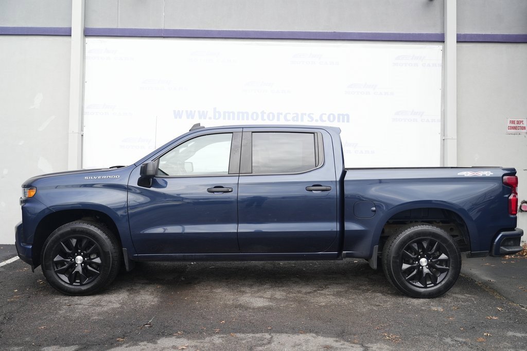 Fully Inspected and Detailed, 8-Speed Automatic, 4WD, Black Cloth. Lowest market prices guaranteed, no hidden fees, excellent financing rates for every credit situation! Clean CARFAX. Priced below KBB Fair Purchase Price! Northsky Blue Metallic 4WD 2021 Chevrolet Silverado 1500 Custom