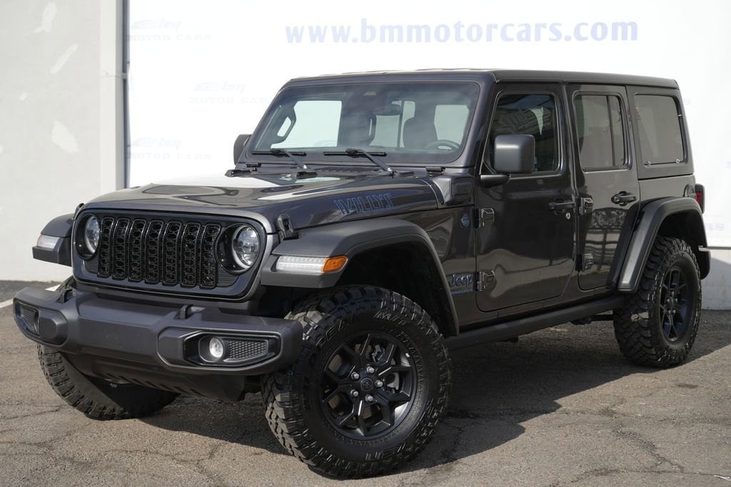Fully Inspected and Detailed, 2.0L I4 DOHC. Lowest market prices guaranteed, no hidden fees, excellent financing rates for every credit situation! Recent Arrival! CARFAX One-Owner. Clean CARFAX. Priced below KBB Fair Purchase Price! Granite Crystal Metallic Clearcoat 4WD 2025 Jeep Wrangler Willys 4xe