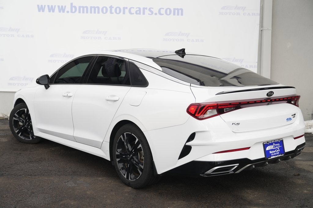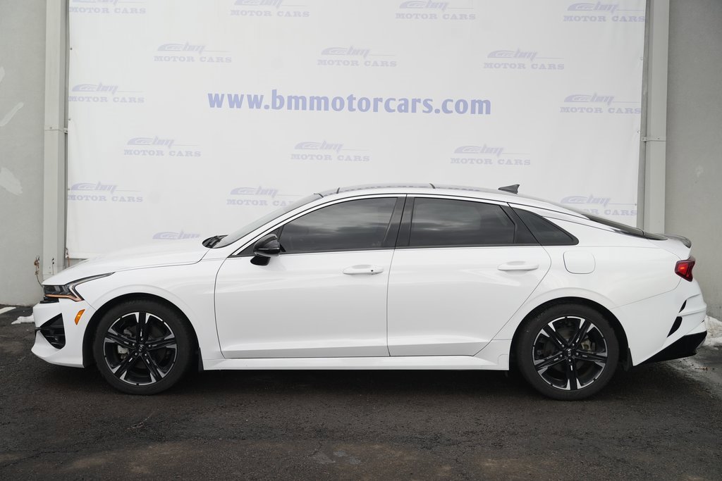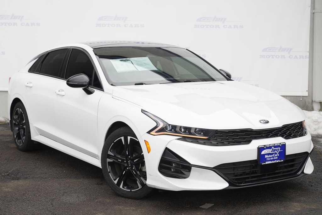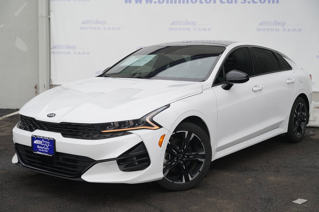 Fully Inspected and Detailed. Lowest market prices guaranteed, no hidden fees, excellent financing rates for every credit situation! Recent Arrival! Priced below KBB Fair Purchase Price! Glacial White Pearl AWD 2021 Kia K5 GT-Line Odometer is 3426 miles below market average! 26/34 City/Highway MPG