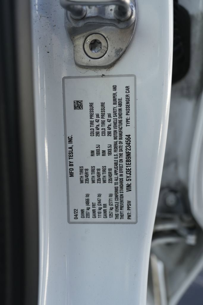 Fully Inspected and Detailed. Lowest market prices guaranteed, no hidden fees, excellent financing rates for every credit situation! CARFAX One-Owner. Clean CARFAX. Priced below KBB Fair Purchase Price! White AWD 2022 Tesla Model 3 Long Range 134/126 City/Highway MPG