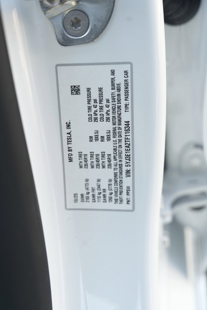 BLIND SPOT MONITORING, BACKUP CAMERA, SUNROOF, BLUETOOTH CONNECTIVITY, APPLE CAR PLAY / ANDROID AUTO, Power Liftgate, ABS brakes, Alloy wheels, Compass, Electronic Stability Control, Emergency communication system, Front dual zone A/C, Heated door mirrors, Heated front seats, Illuminated entry, Low tire pressure warning, Navigation System, Traction control. Lowest market prices guaranteed, no hidden fees, excellent financing rates for every credit situation! Clean CARFAX. White RWD 2026 Tesla Model 3 Long Range 145/128 City/Highway MPG